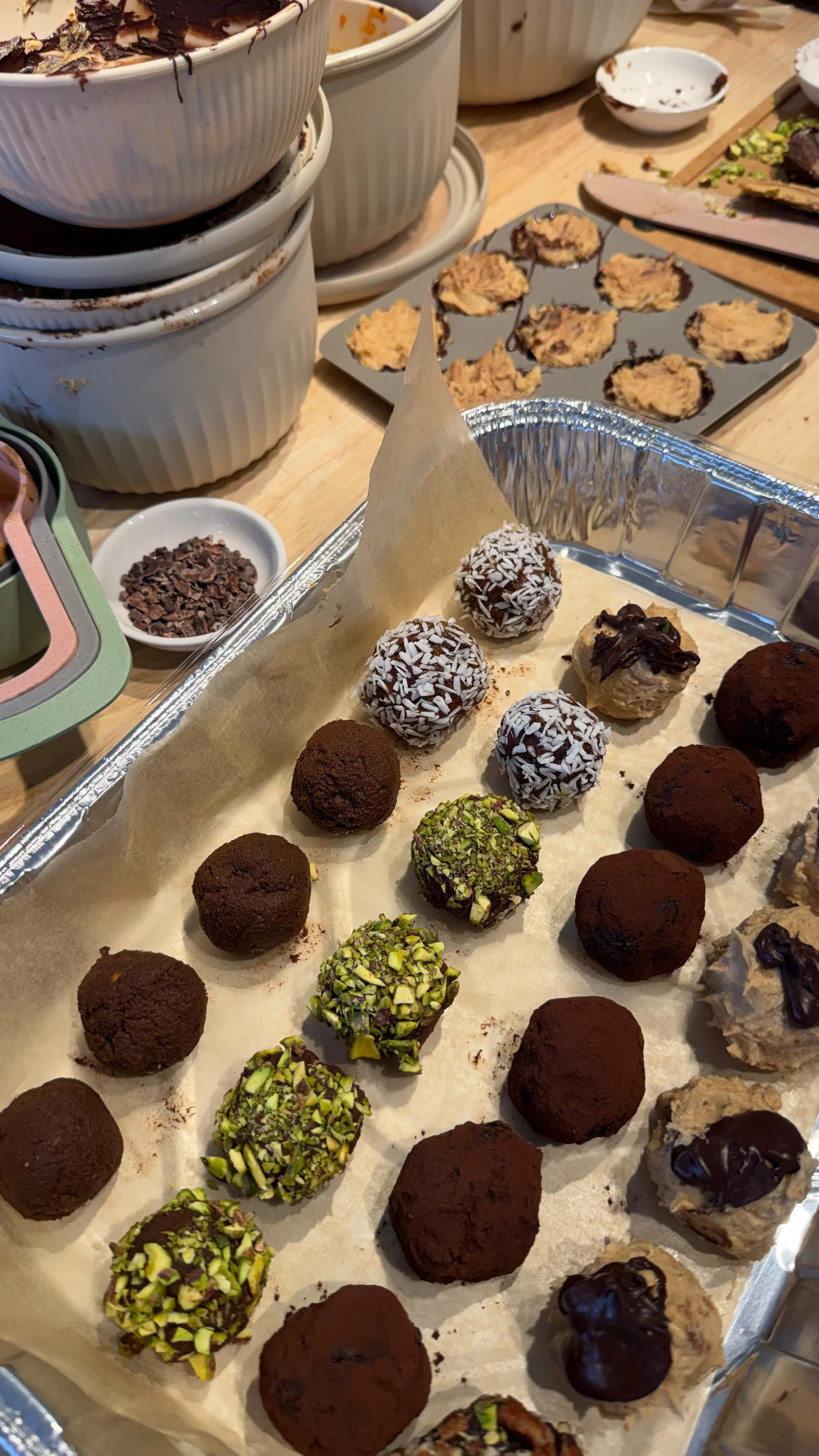 Spend an early afternoon with us during the week to create 3-5 different anti-inflammatory, low-carb, nutrient-dense treats together (no-bake fat bombs, nut + seed pastries, chocolate peanut bites, saffron pistachio treats, etc.).